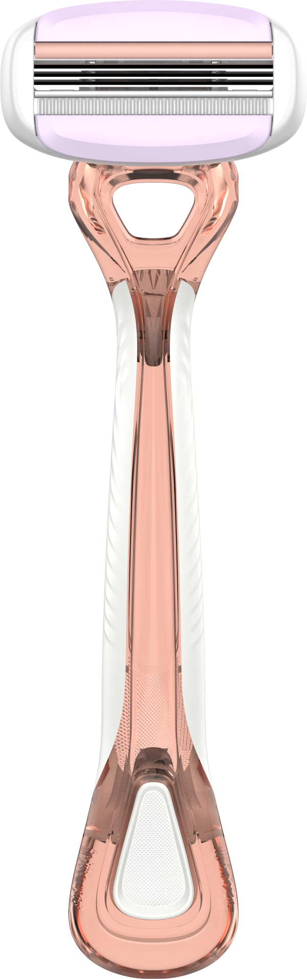 Schmierstoffe einschließlich Aloe Vera, Arganöl und Avocadoöl gleiten über die Haut für eine komfortable Rasur.