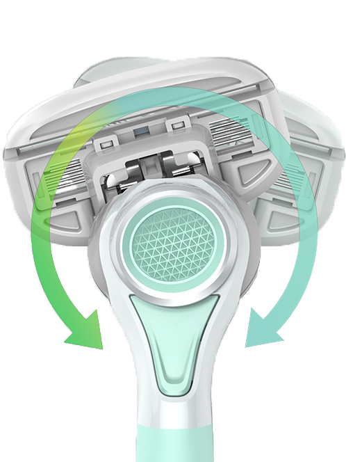 Bewegungsbewegung ermöglicht es der Patrone, den Konturen Ihrer Haut für eine enge Rasur zu folgen.