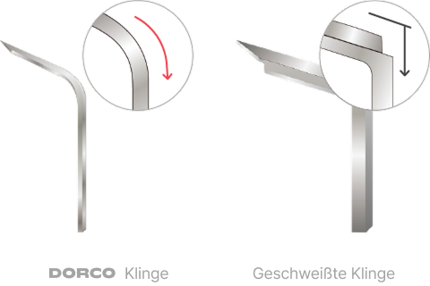 Im Gegensatz zu geschweißten Klingen sind unsere Klingen gebogen, was eine genaue Rasur mit Präzisionsklingen ermöglicht. Darüber hinaus ermöglicht diese Konstruktion eine offene Durchfluss-Klingenpatrone, die den Rasierer leichter